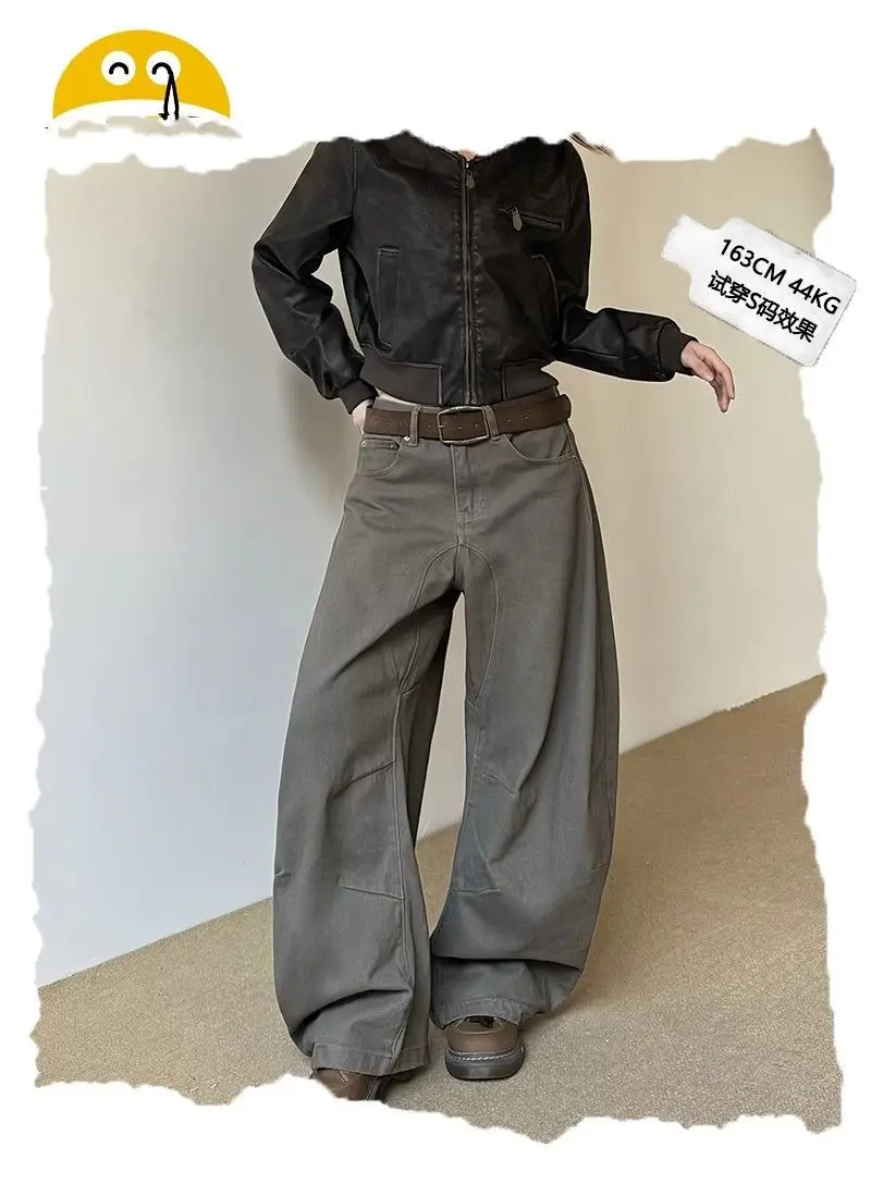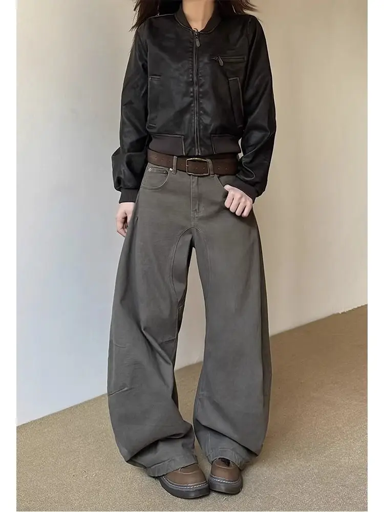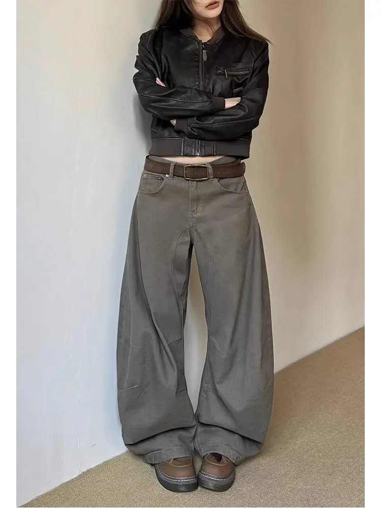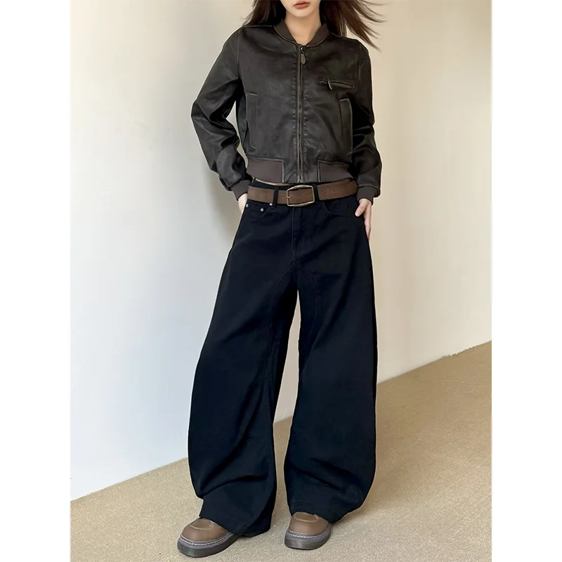 American Vintage 2000s Style High Waist Camel Jeans Pants Spring Fashion Women's Baggy Y2K Wide Leg Denim Trouser Female Clothes