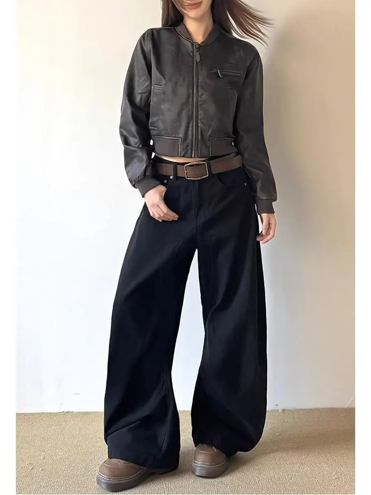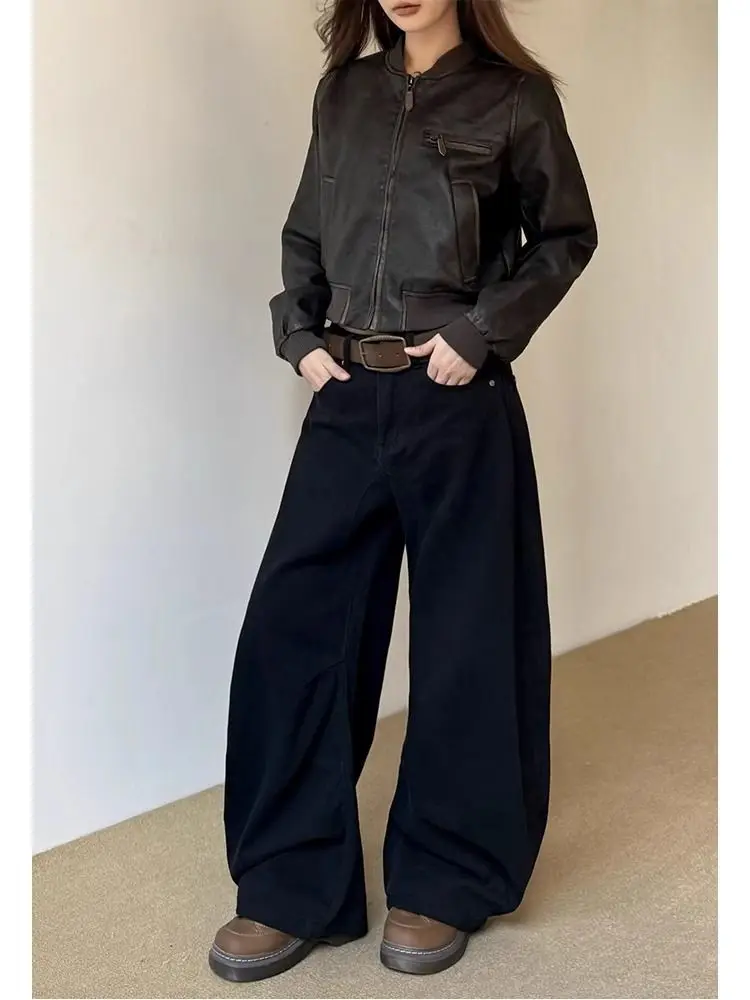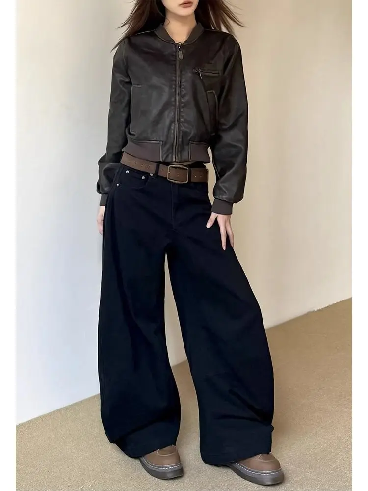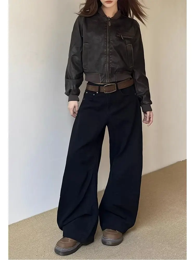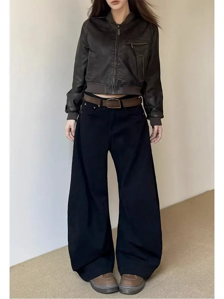 American Vintage 2000s Style High Waist Camel Jeans Pants Spring Fashion Women's Baggy Y2K Wide Leg Denim Trouser Female Clothes