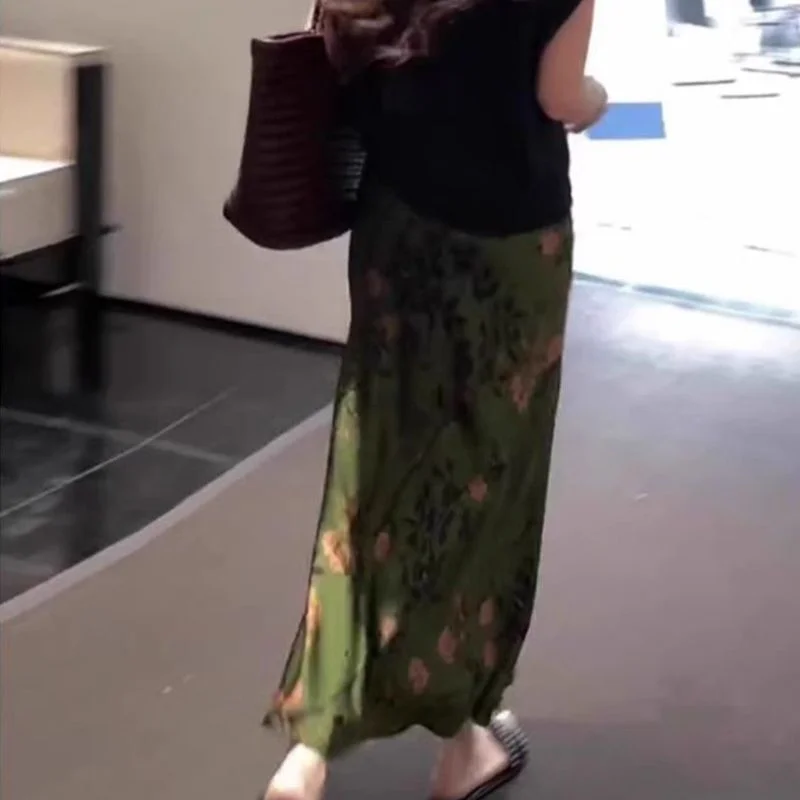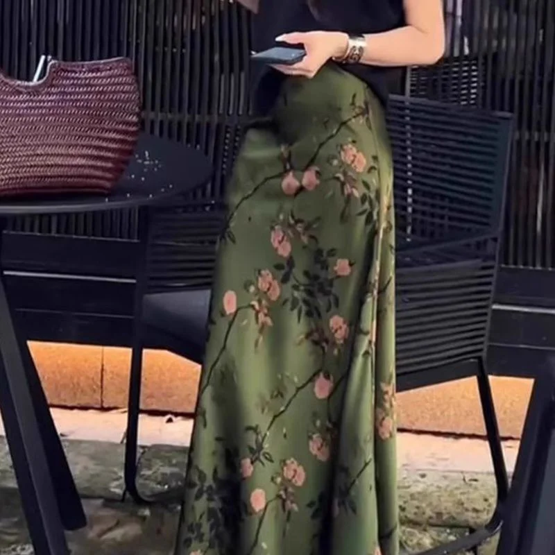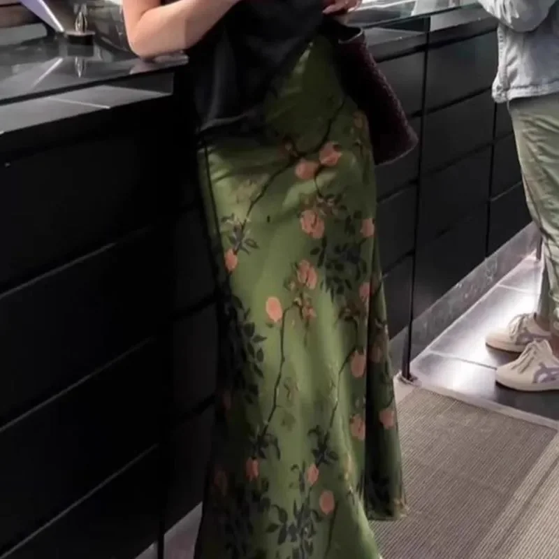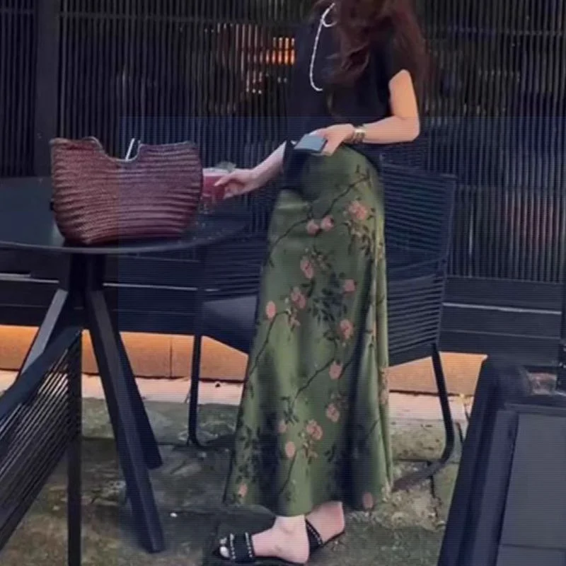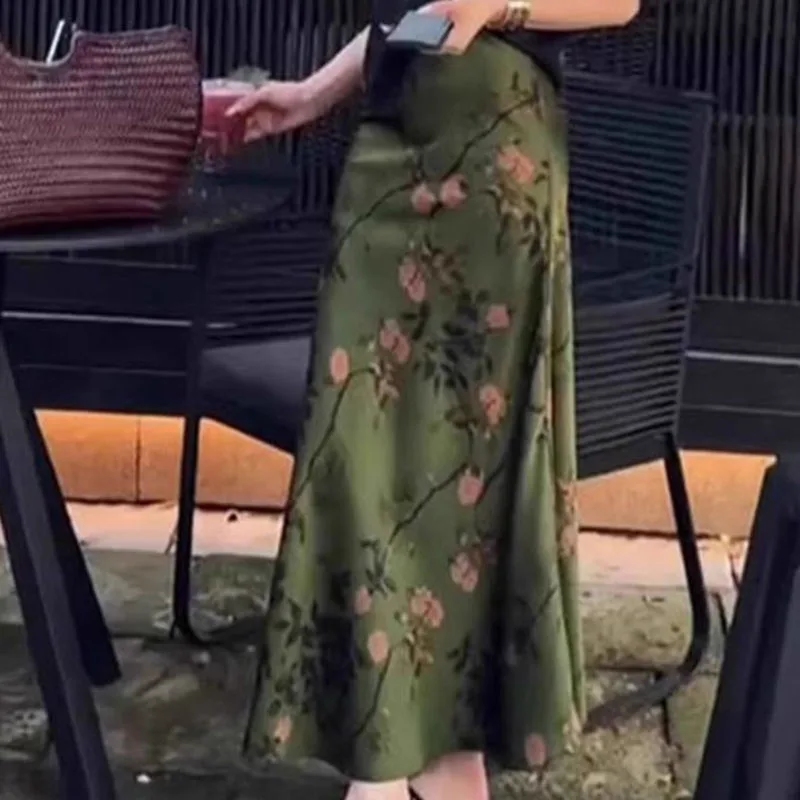Retro Women High Waist A-line Maxi Skirt Femme Fashion Large Size 4XL Long Skirts Autumn Lady High-end Mid-length Fishtail Skirt