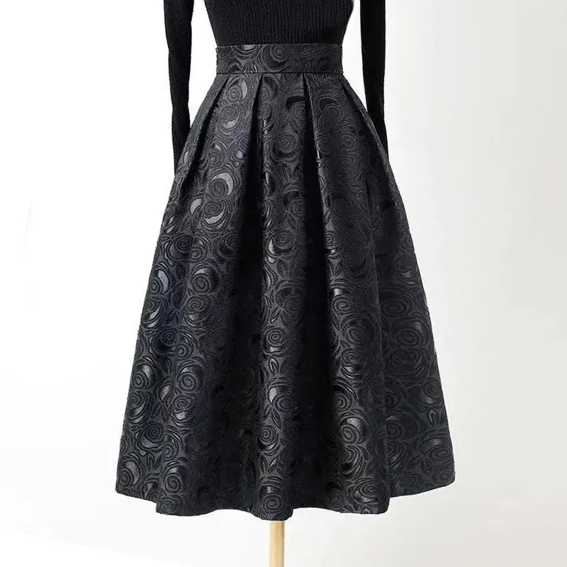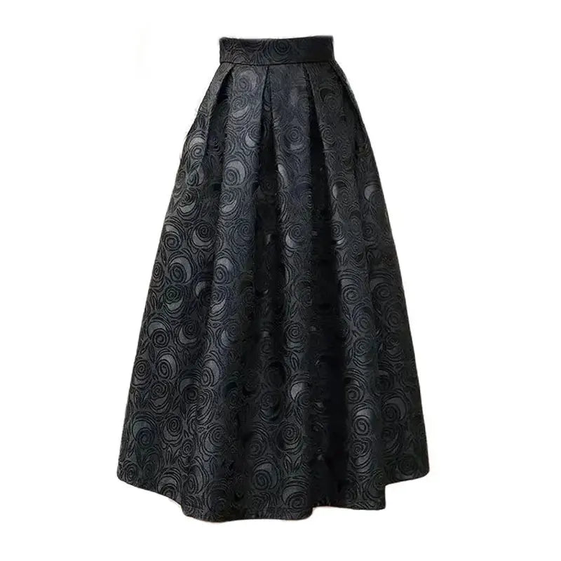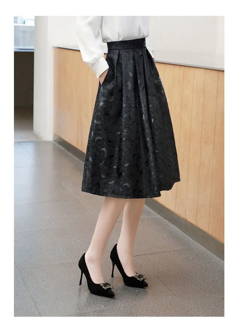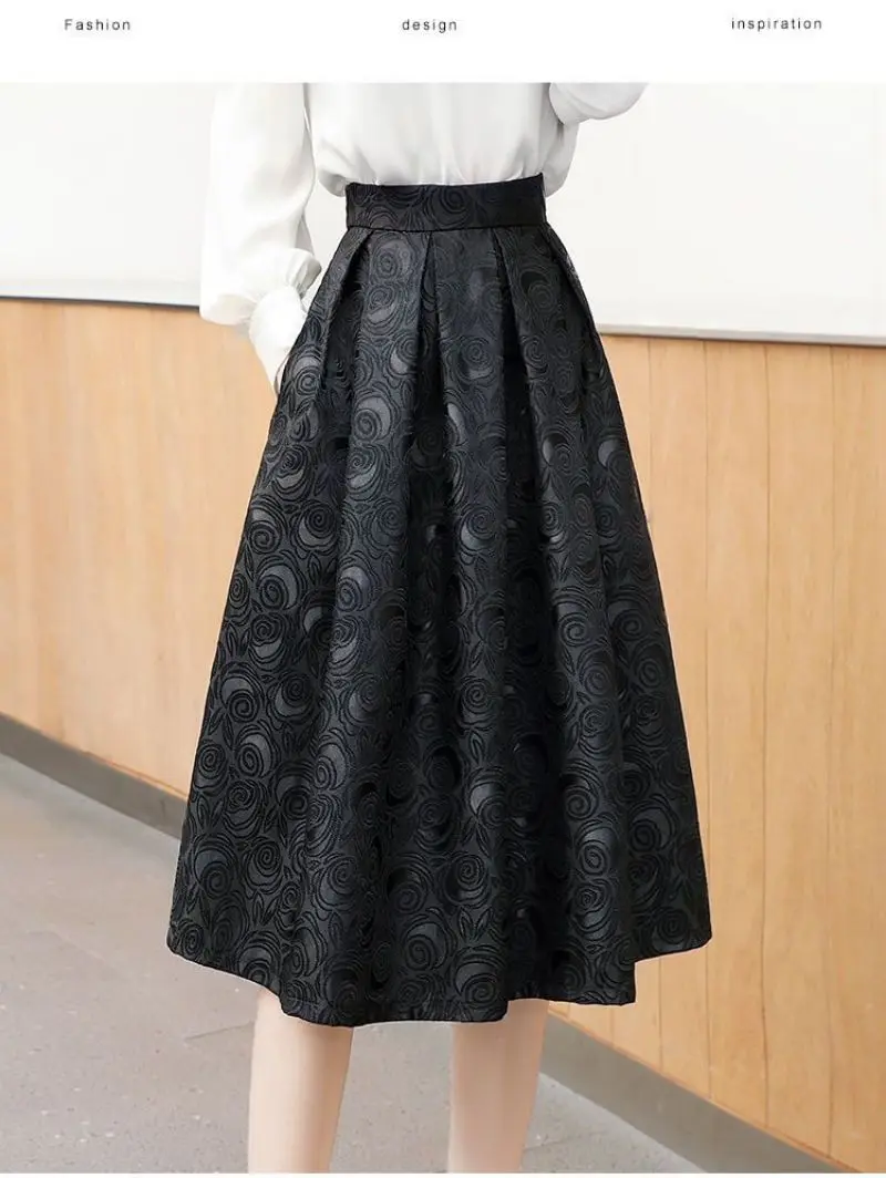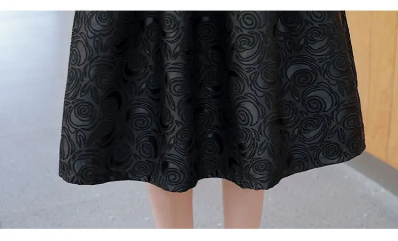 Black Floral Vintage Elegant High Waist Ball Gown A-Line Loose Women's Skirt Knee-Length Long Skirts For Women Clothing Fashion