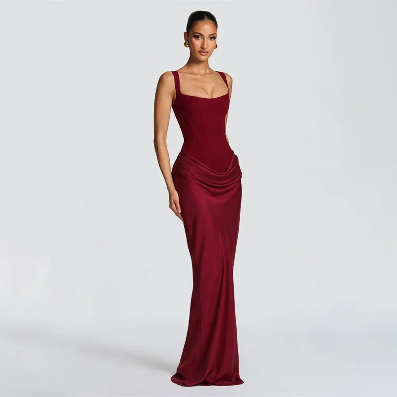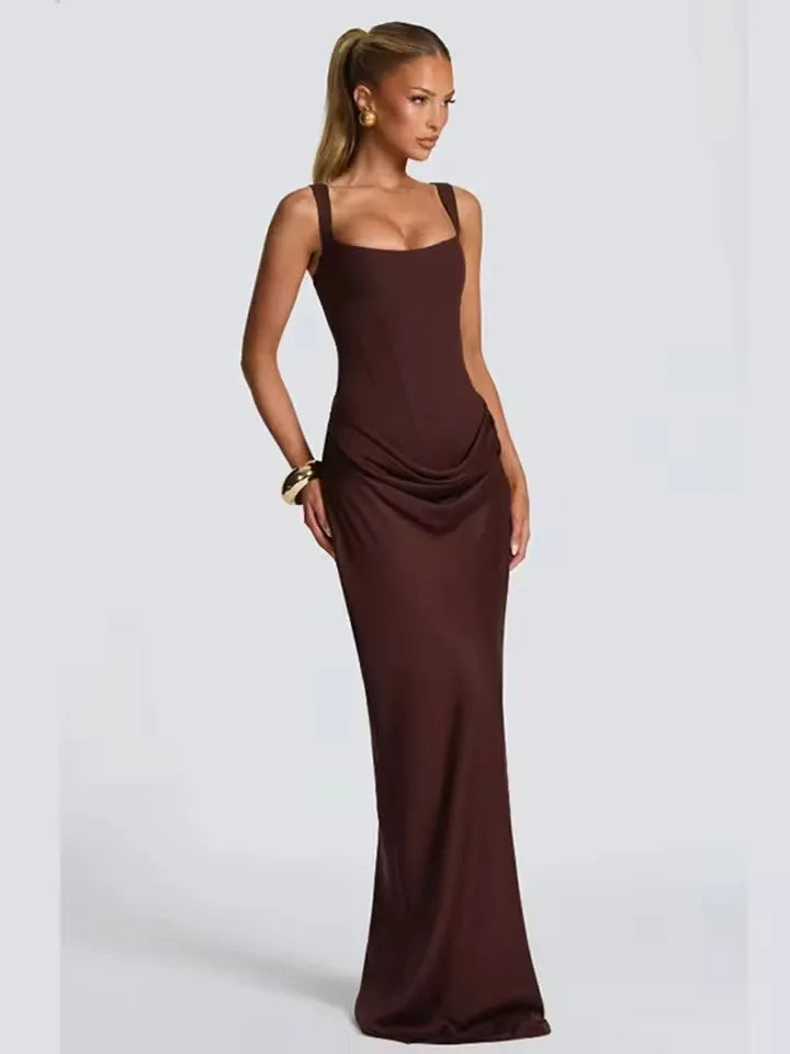COOBBU Brown Sexy Pleated Mini Dress Women 2026 Fashion Square-neck Sleeveless Bodycon Backless High Waist Dresses Lady Party