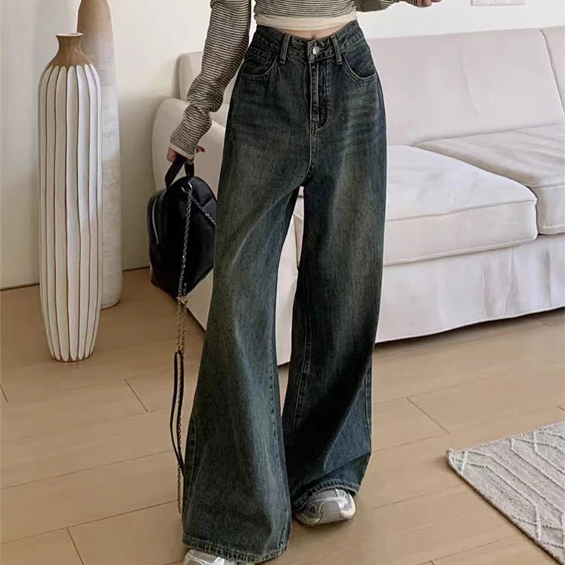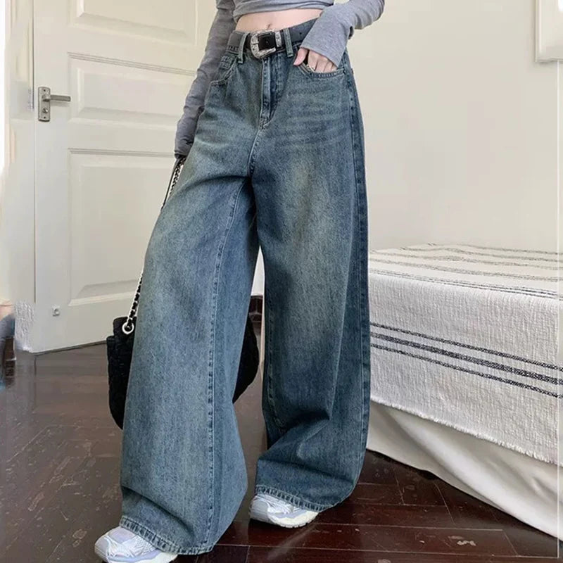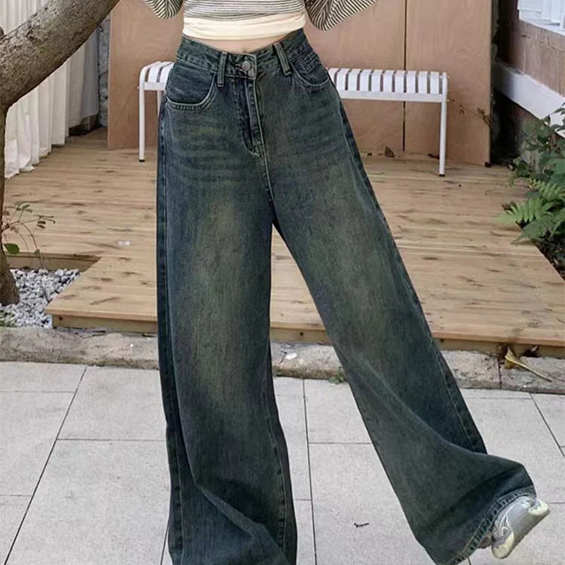 Highstreet Style Blue Straight Jeans Women 2025 Spring Autumn Causal Baggy Wide Leg Jeans for Woman Button Up Trousers Female
