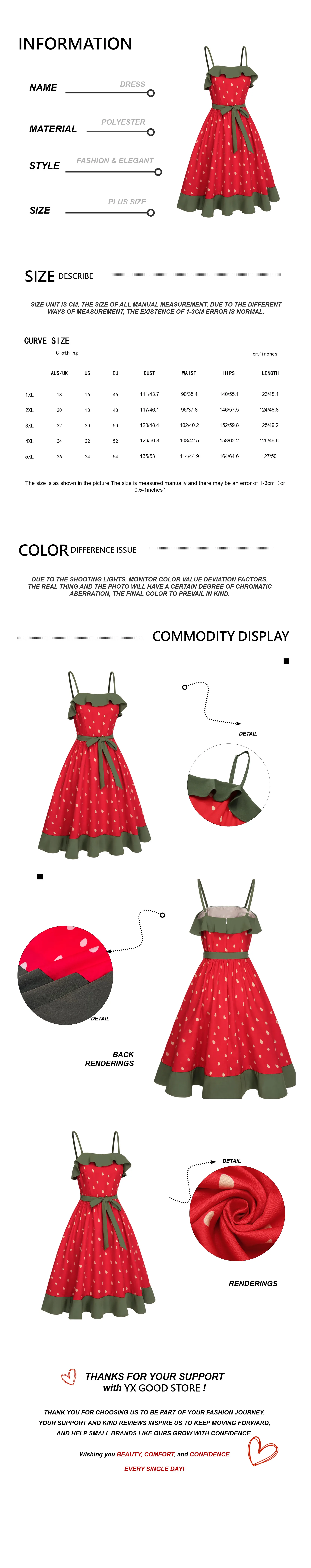 Plus Size Strawberry Print Dress Women's Red Strapless Sundress Green Lace Trim Summer Dress Free Shipping