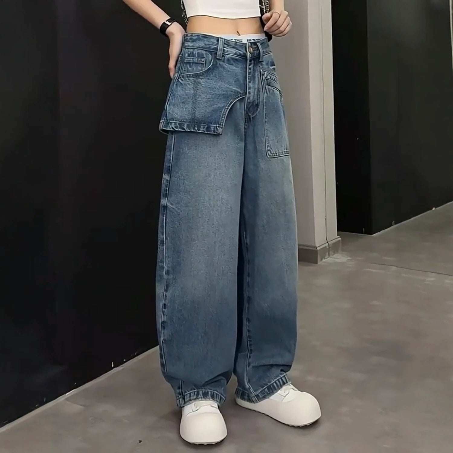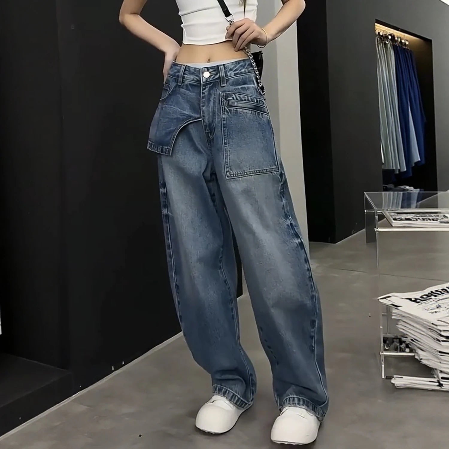 Women Jeans Autumn 2025 New Fashion jeans Pocket patchwork asymmetry Design Long Trousers Women's Clothing Cotton thin pants