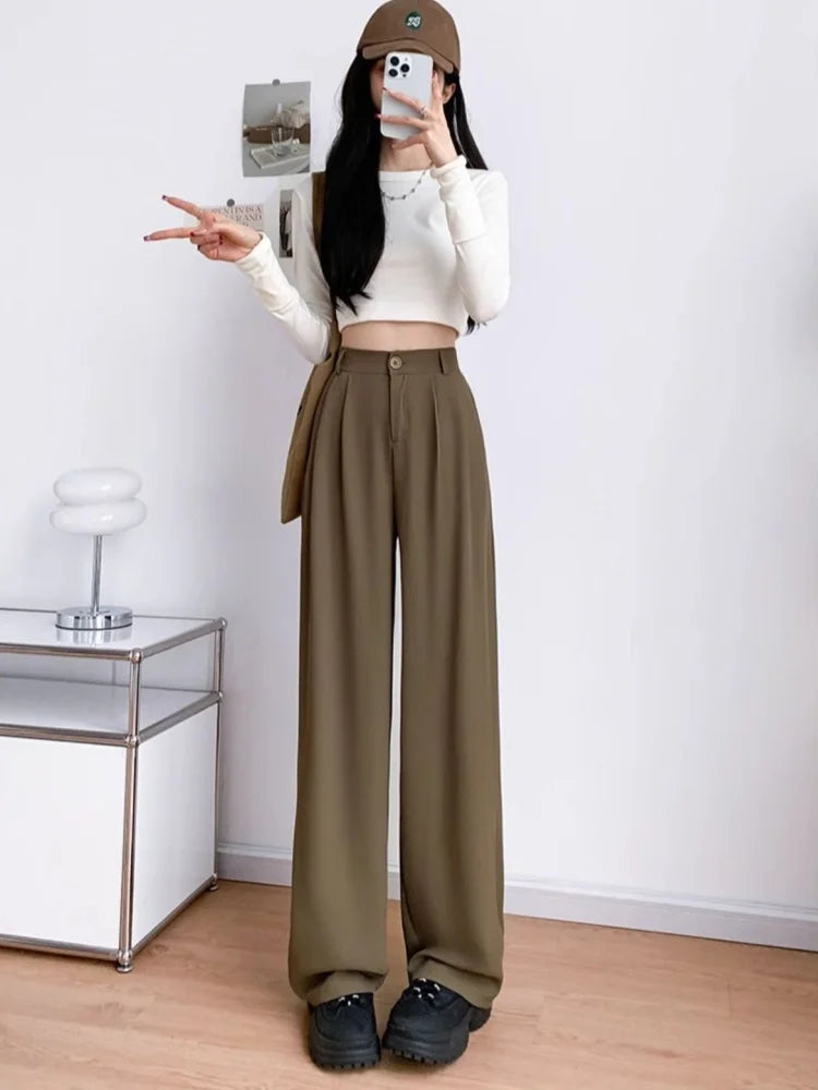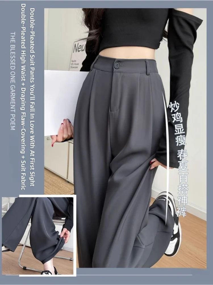 Women's Summer Slim-Fit Trousers: Lightweight, Flowing, Breathable, Comfortable and Soft Wide-Leg Straight-Leg Trousers