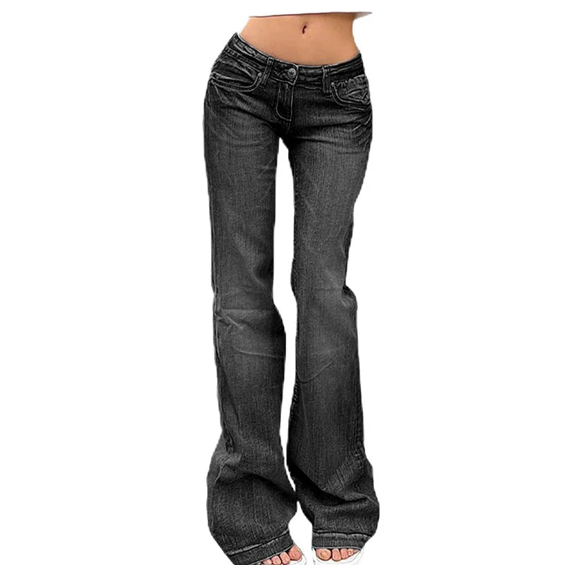 Y2K Vintage Flare Jeans for Women Sexy Low Rise Slim Fit Stretch Washed Denim Pants Harajuku Streetwear Wide Leg Jean Trousers