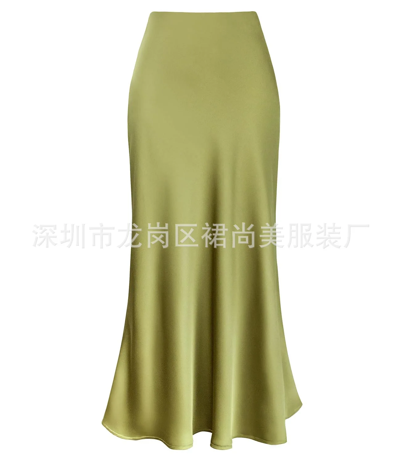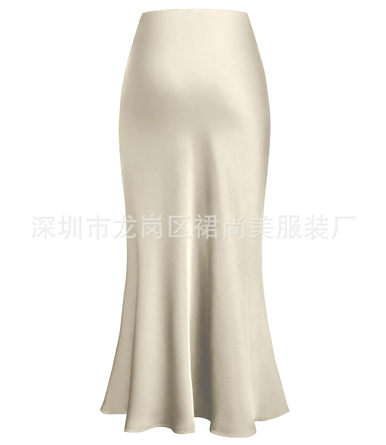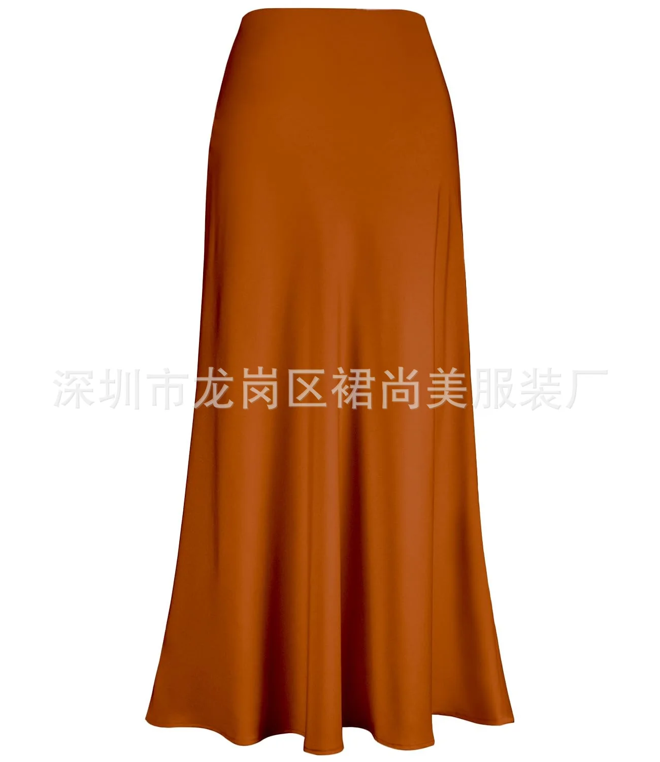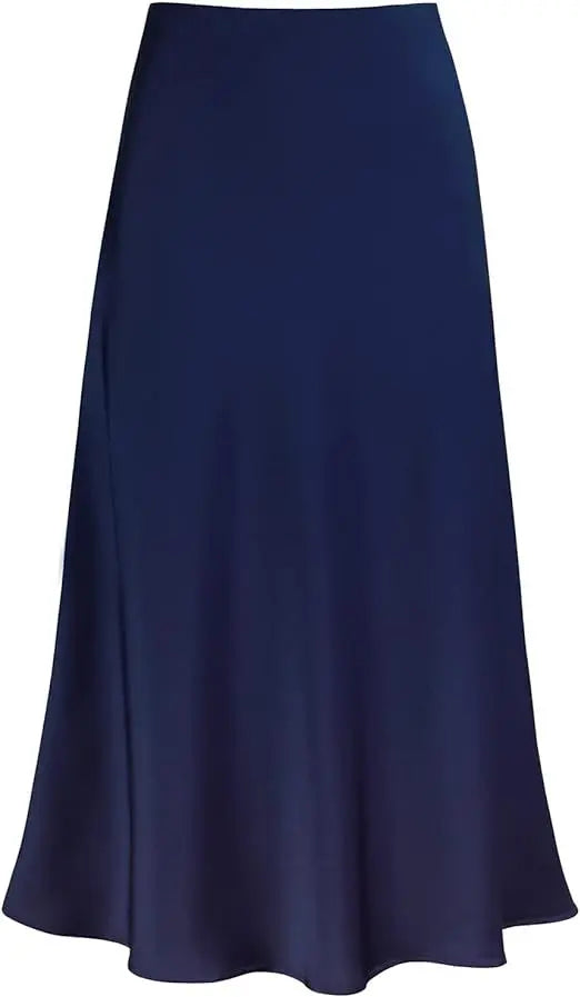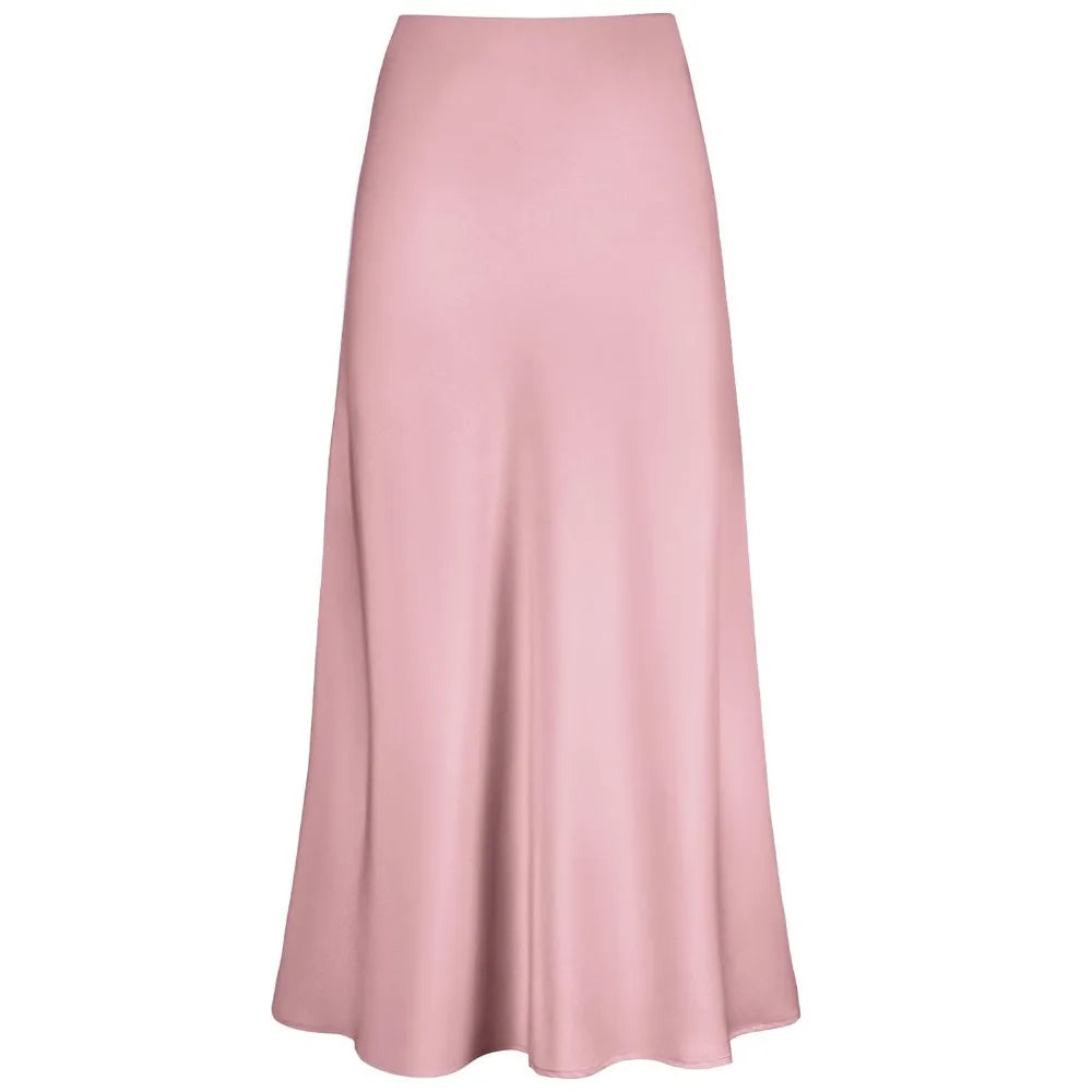 2025 Elegant Faux Silk Satin Skirts for Women High Waist A-line Office Lady Solid Color Glossy Finish Fishtail Skirt