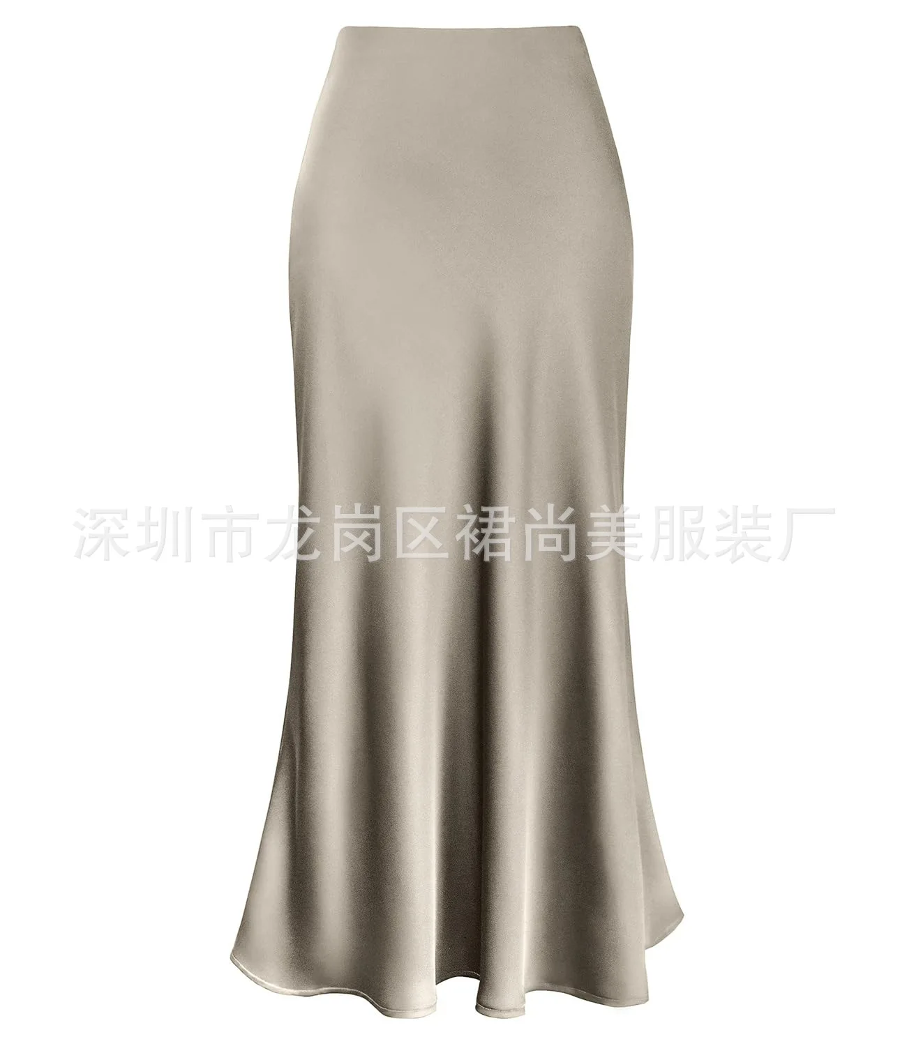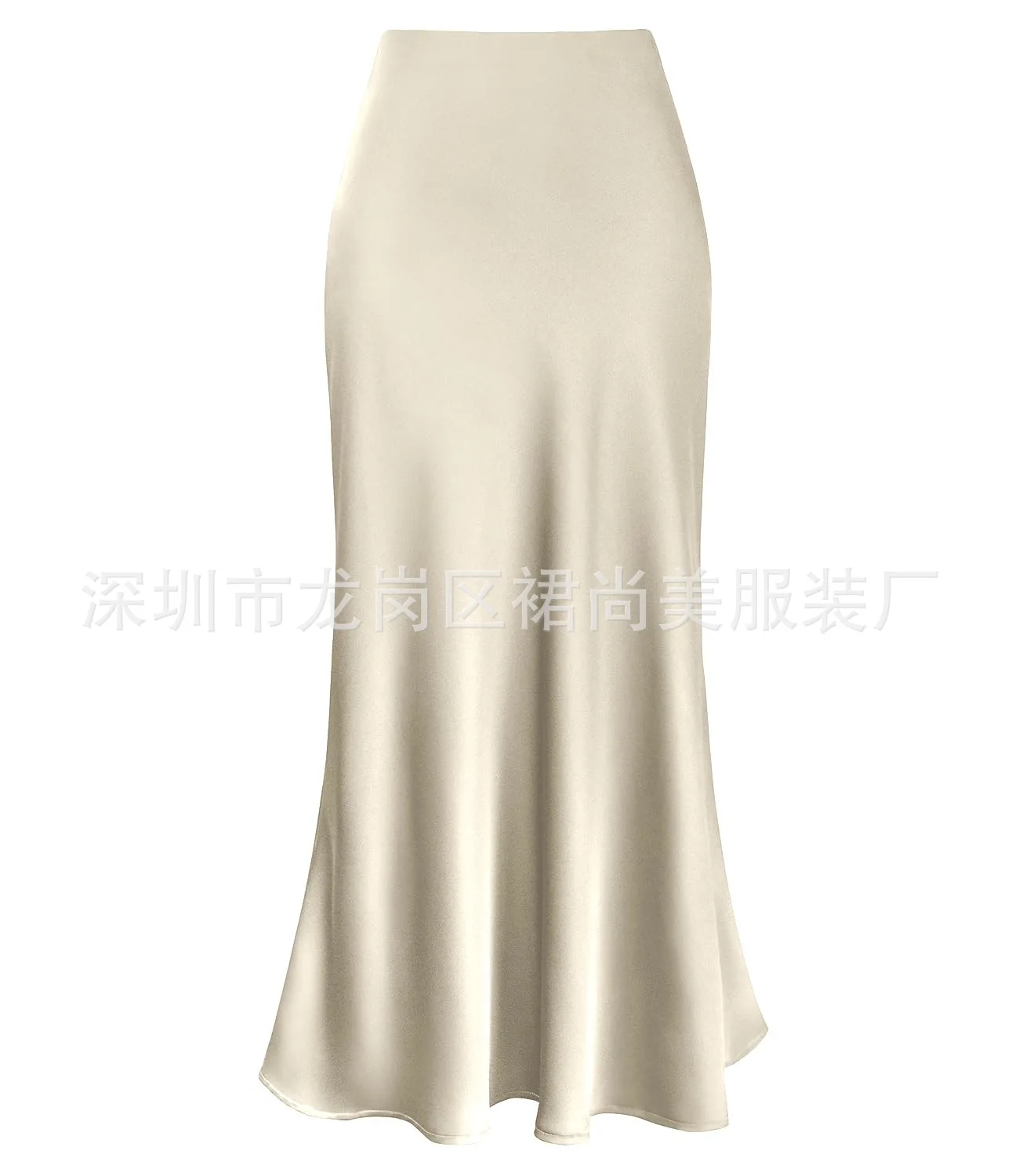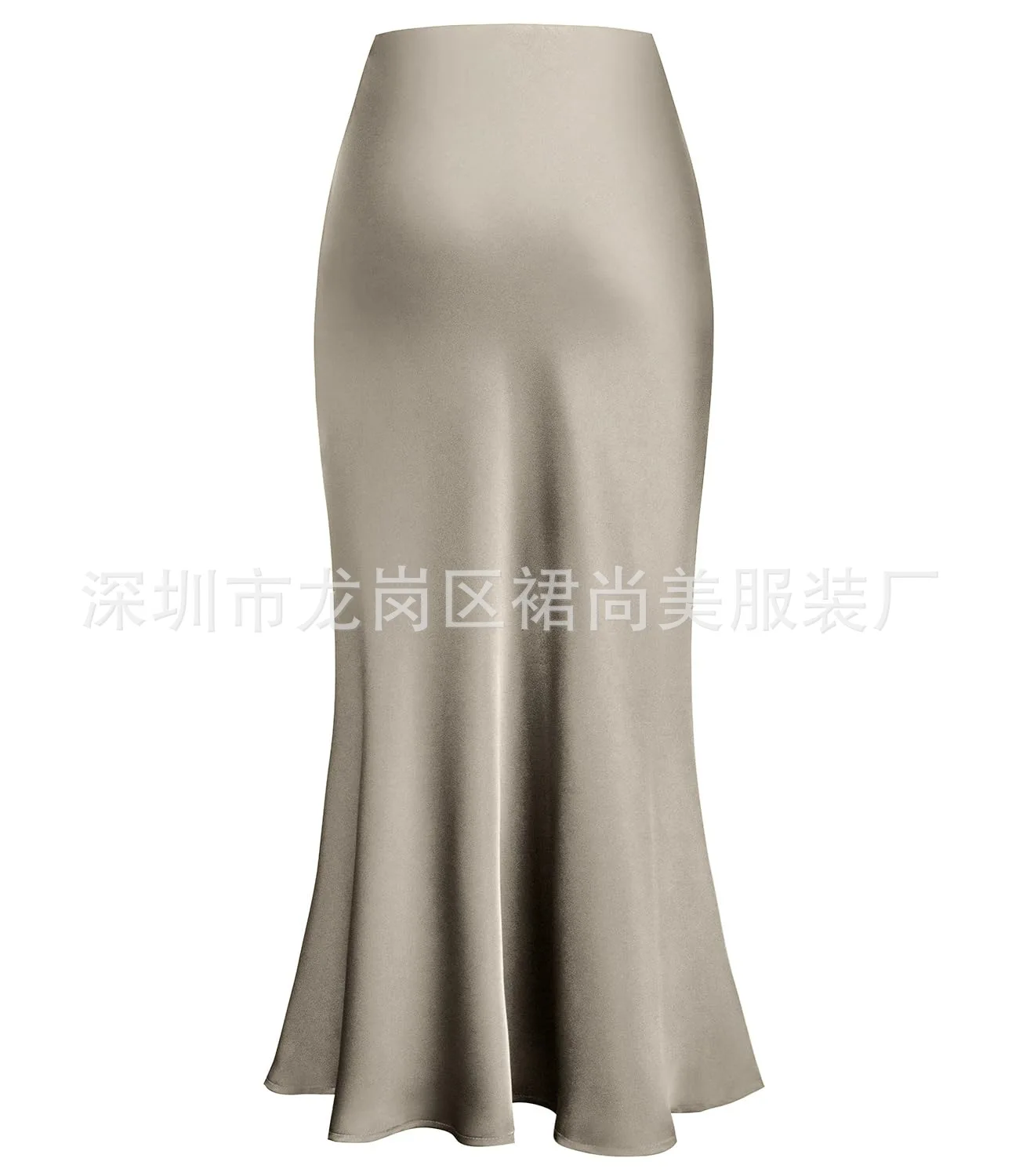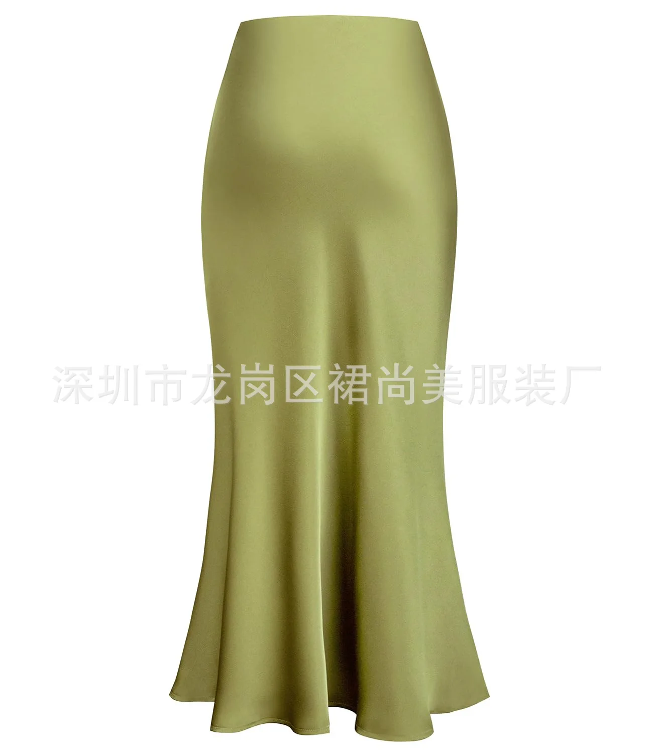 2025 Elegant Faux Silk Satin Skirts for Women High Waist A-line Office Lady Solid Color Glossy Finish Fishtail Skirt