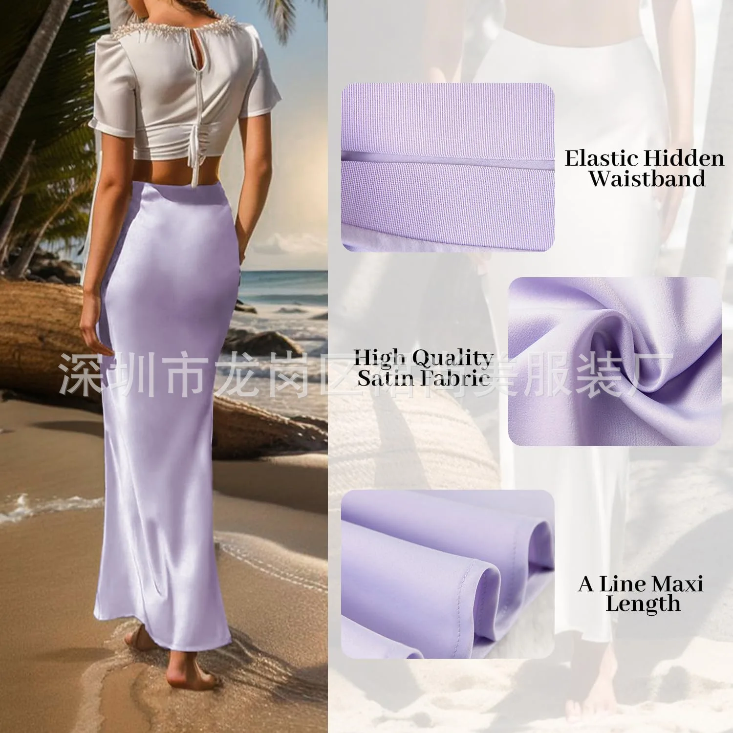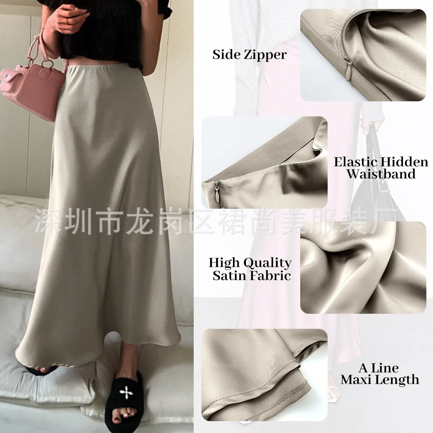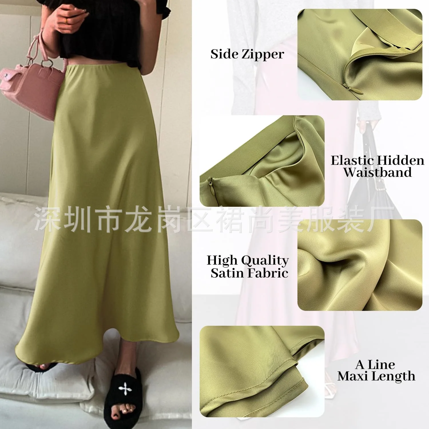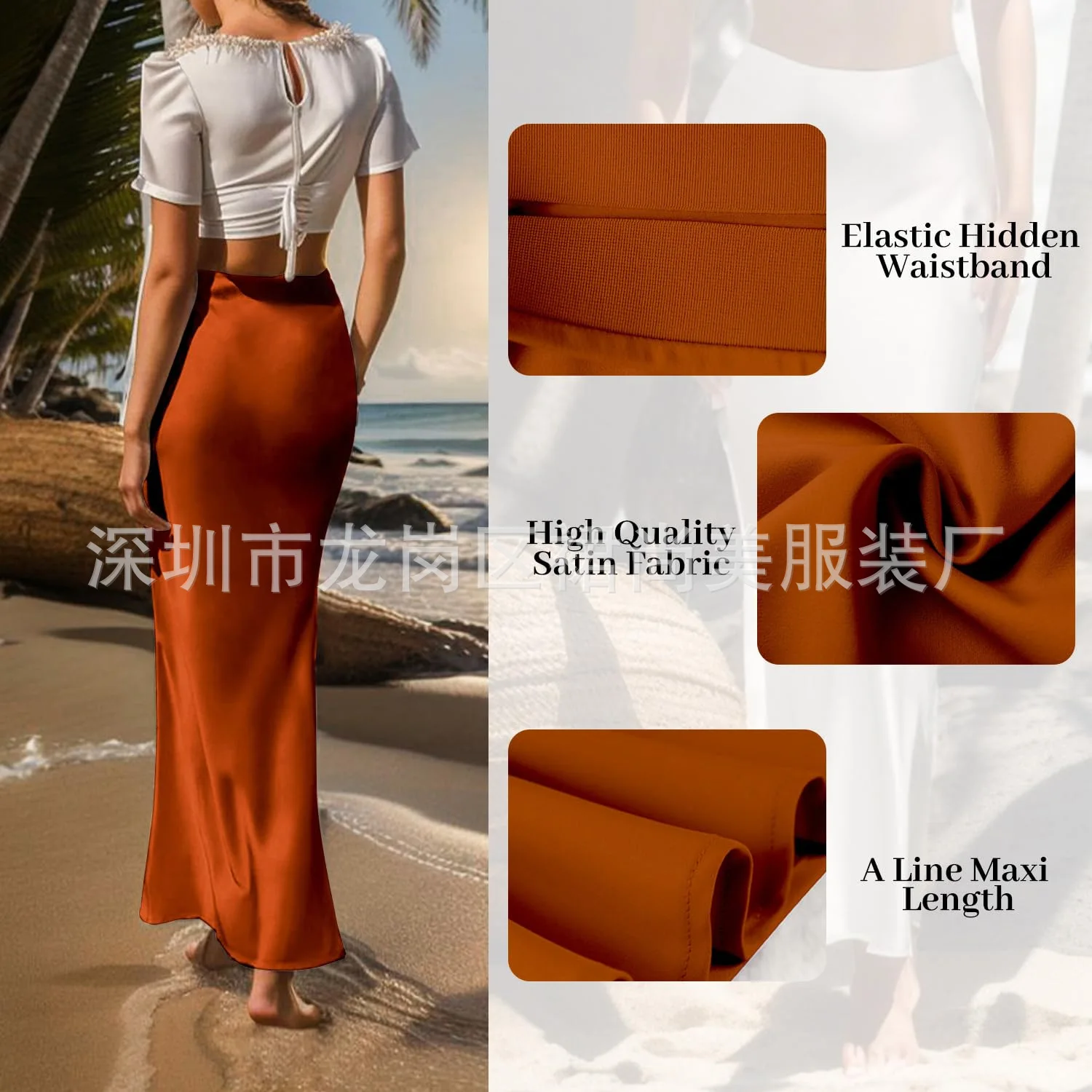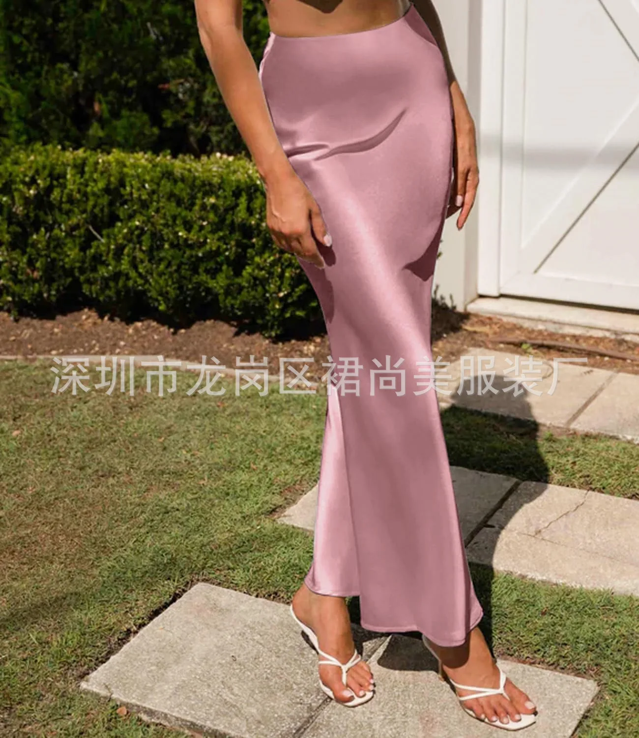 2025 Elegant Faux Silk Satin Skirts for Women High Waist A-line Office Lady Solid Color Glossy Finish Fishtail Skirt
