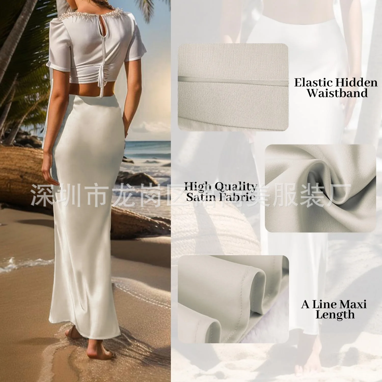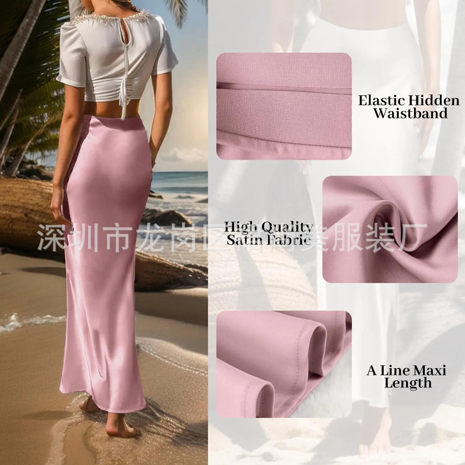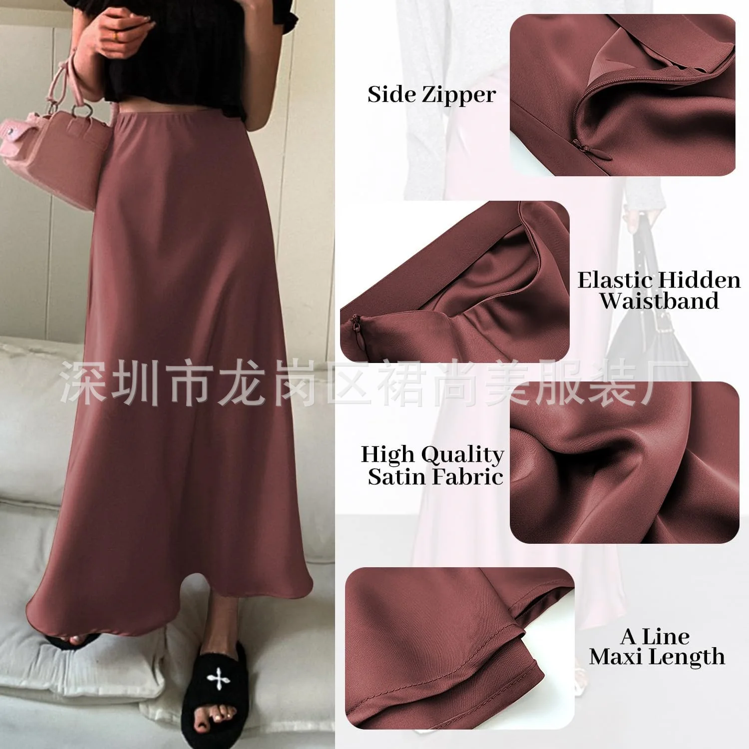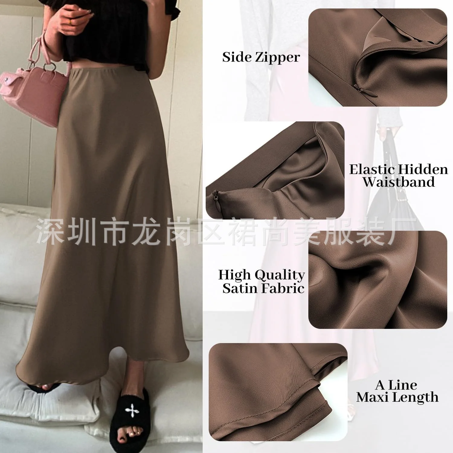 2025 Elegant Faux Silk Satin Skirts for Women High Waist A-line Office Lady Solid Color Glossy Finish Fishtail Skirt