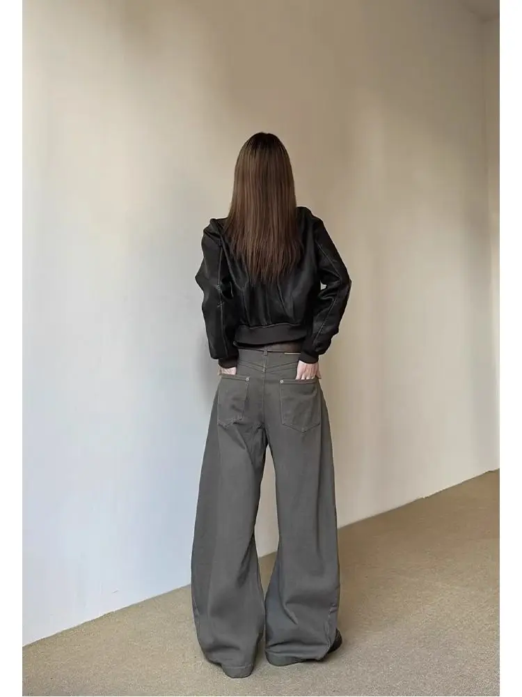 American Vintage 2000s Style High Waist Camel Jeans Pants Spring Fashion Women's Baggy Y2K Wide Leg Denim Trouser Female Clothes