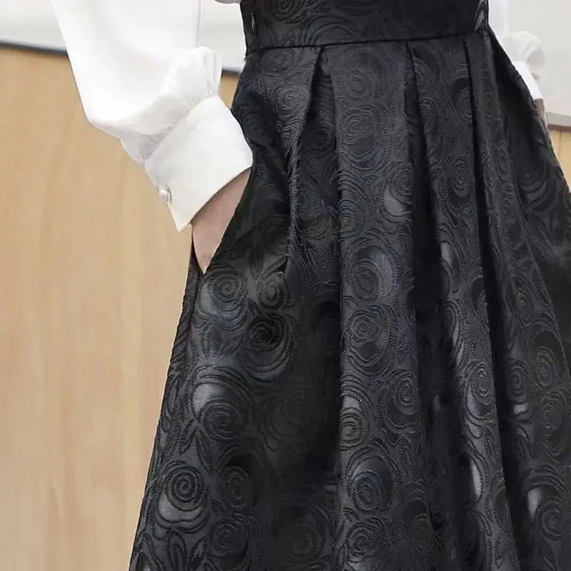 Black Floral Vintage Elegant High Waist Ball Gown A-Line Loose Women's Skirt Knee-Length Long Skirts For Women Clothing Fashion