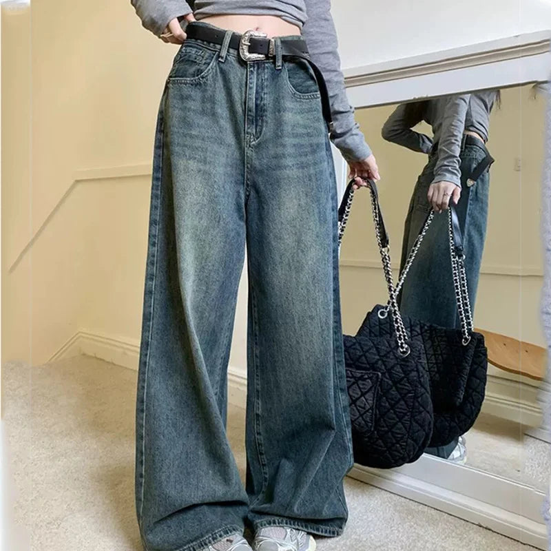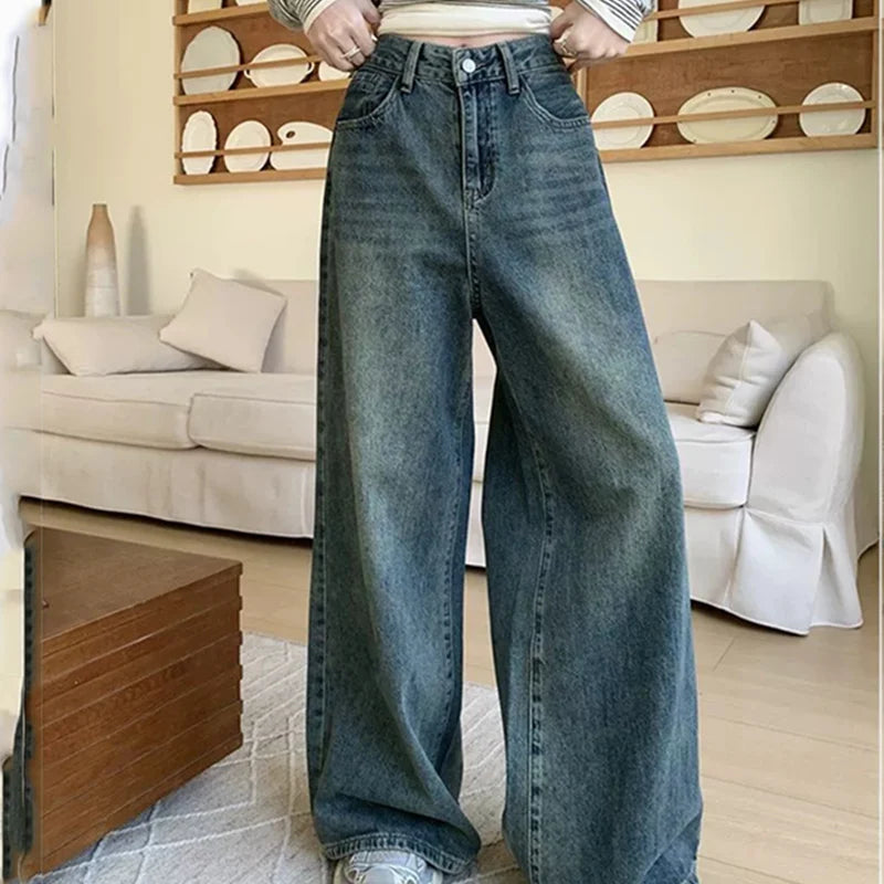 Highstreet Style Blue Straight Jeans Women 2025 Spring Autumn Causal Baggy Wide Leg Jeans for Woman Button Up Trousers Female