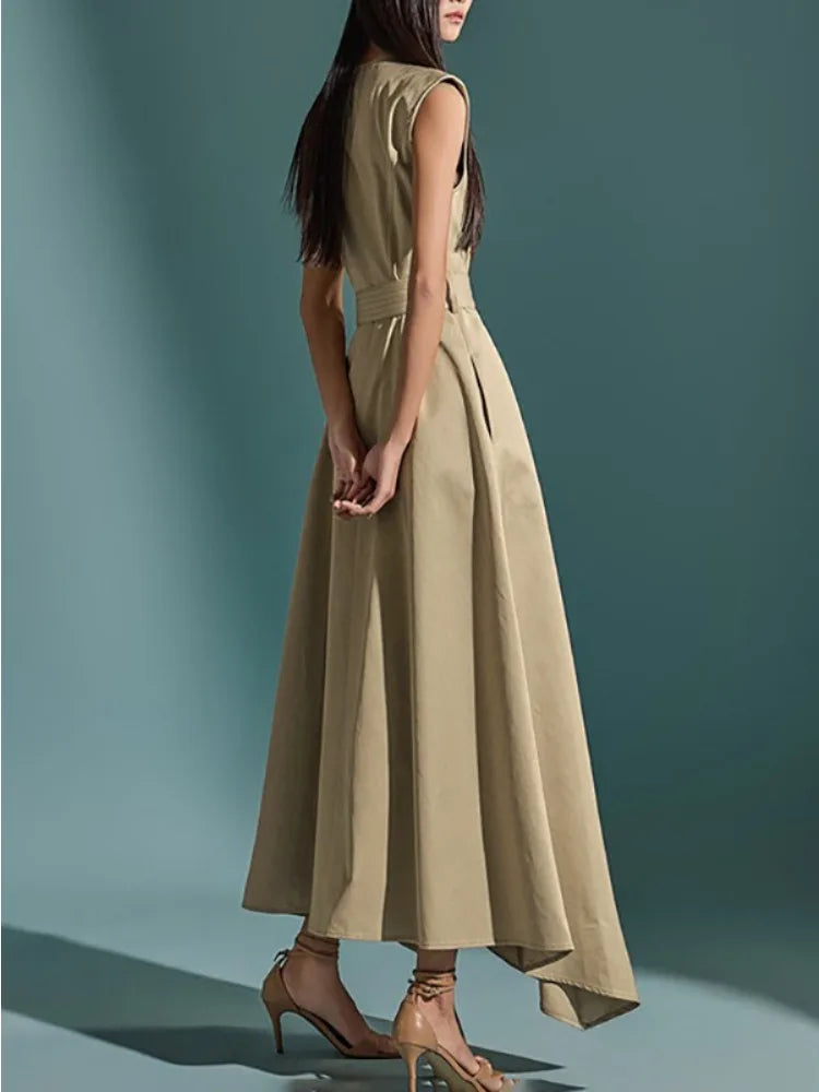 Missuoo Summer 2025 Women's Elegant Sleeveless Cotton-Blended Dress Double Button High Waist A-Line Office Dresses with Belt