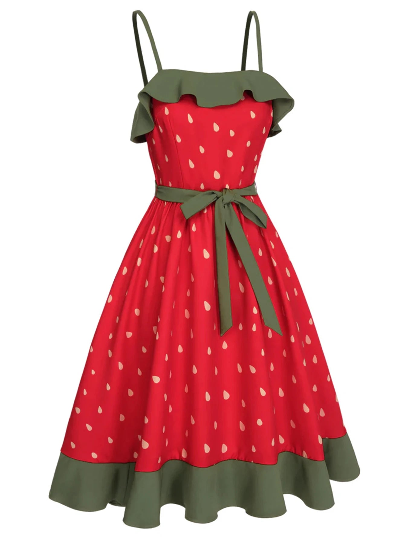 Plus Size Strawberry Print Dress Women's Red Strapless Sundress Green Lace Trim Summer Dress Free Shipping