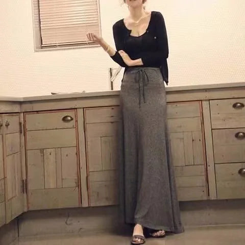 Women's Plus Size High Waist A-Line Long Skirt Japanese Korean Style Side Slit Bodycon Flared Swing Skirt