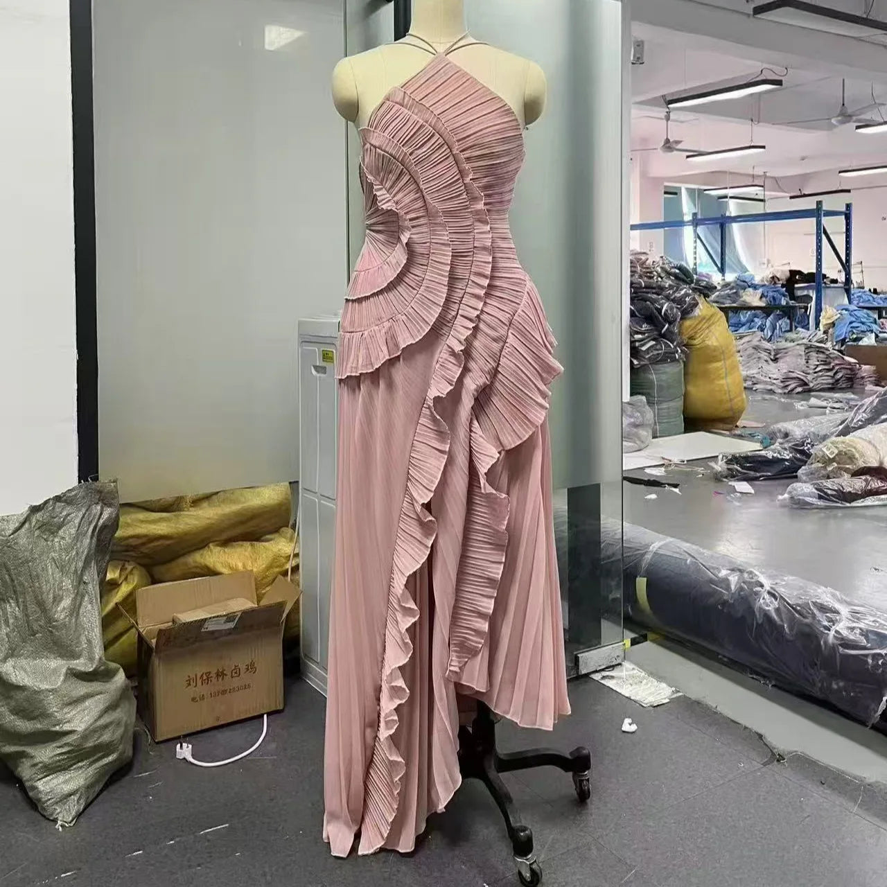 Women's summer high-end halter sleeveless irregular lace slit dress