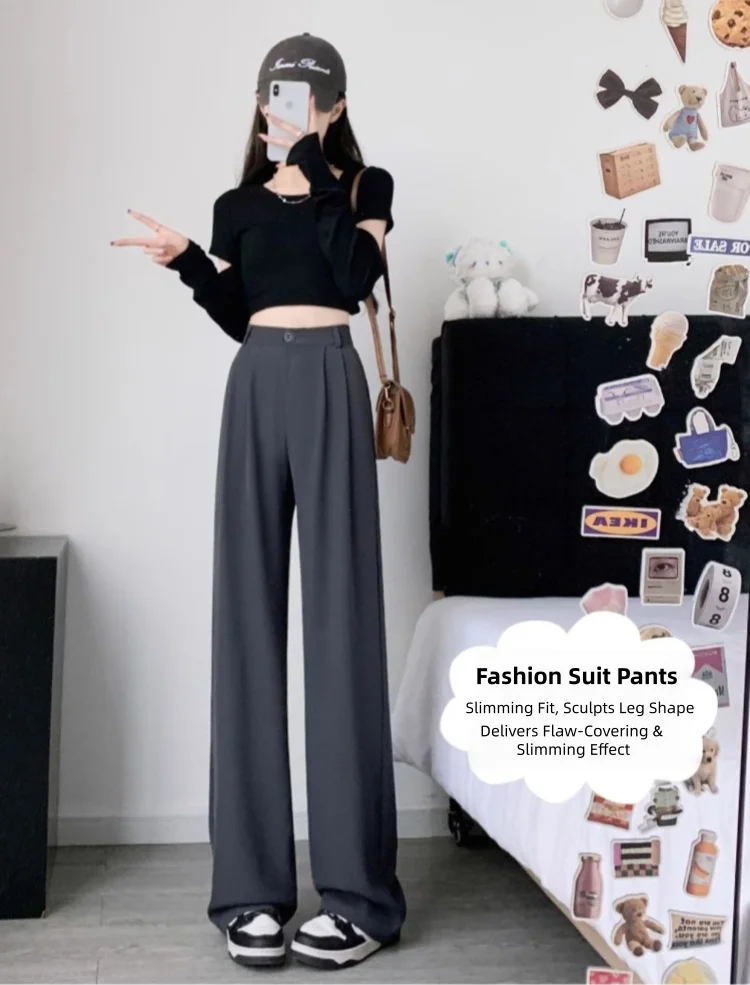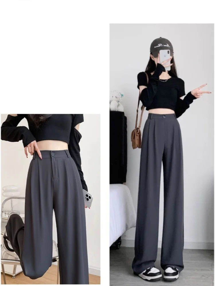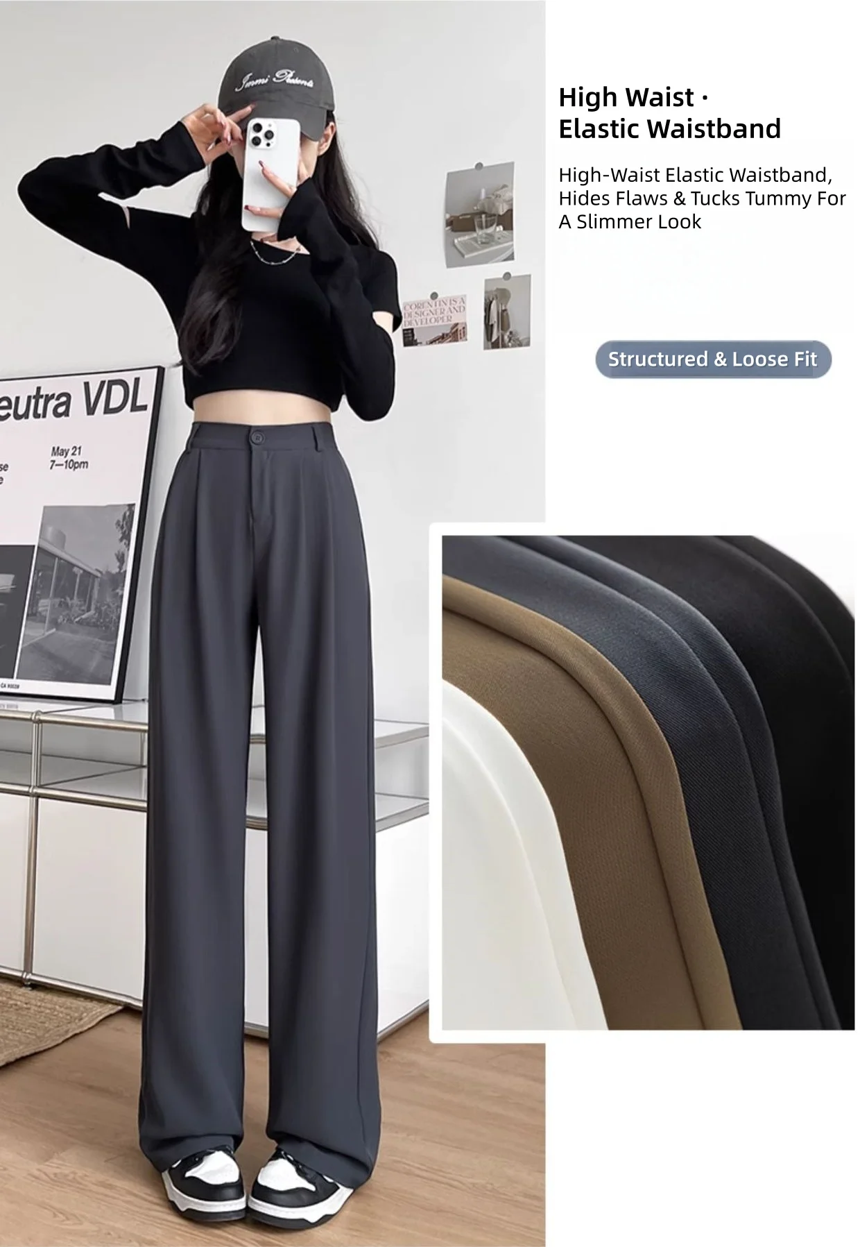 Women's Summer Slim-Fit Trousers: Lightweight, Flowing, Breathable, Comfortable and Soft Wide-Leg Straight-Leg Trousers